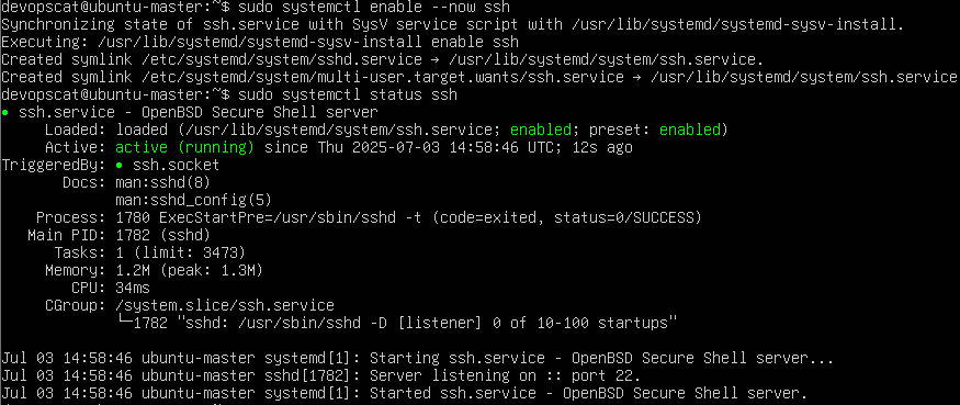 # SSH 서비스 상태 확인 sudo systemctl status ssh # apt 저장소 목록을 최신으로 갱신 sudo apt update # OpenSSH 서버를 설치 sudo apt install openssh-server # SSH 서비스를 즉시 시작하고, 부팅 시 자동 실행 설정 sudo systemctl enable --now ssh