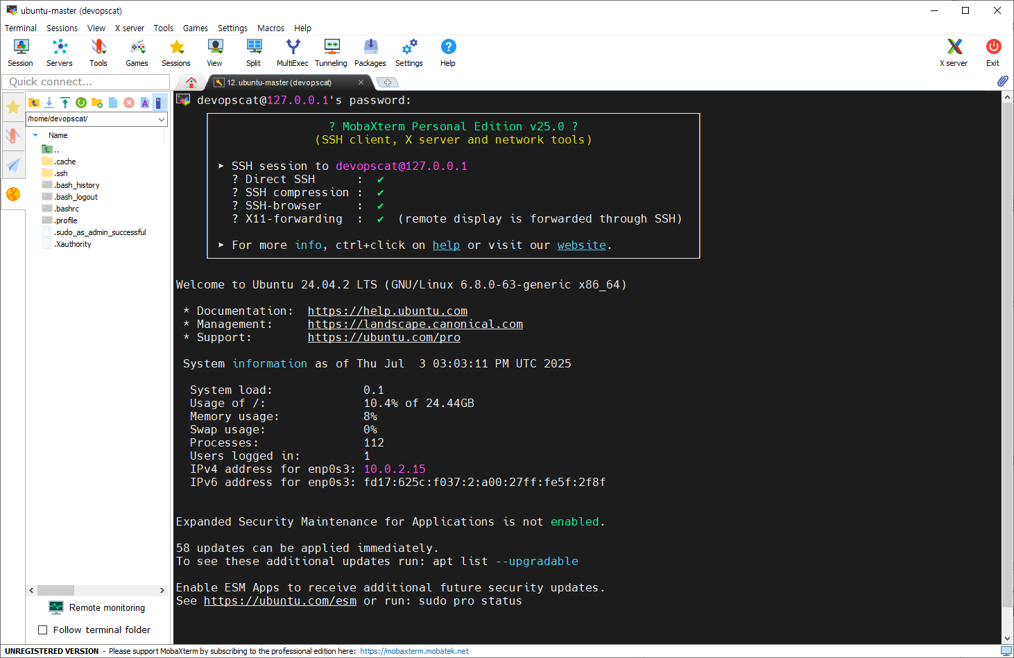 - 기존에 k8s-master로 시작하는 VM이 있어서 ubuntu-master로 변경함