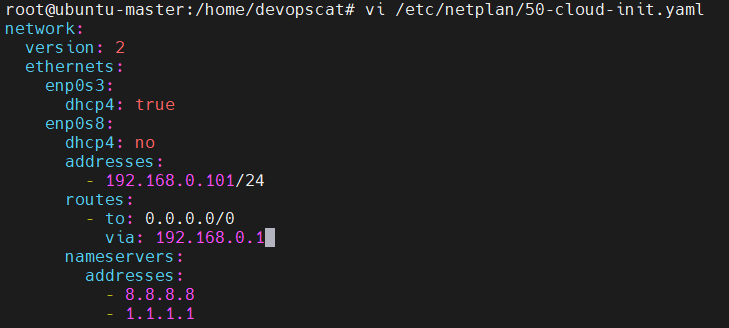 # 네트워크 설정 파일 수정 vi /etc/netplan/50-cloud-init.yaml # 설정 변경 후 적용 sudo netplan apply- vi /etc/netplan/50-cloud-init.yaml