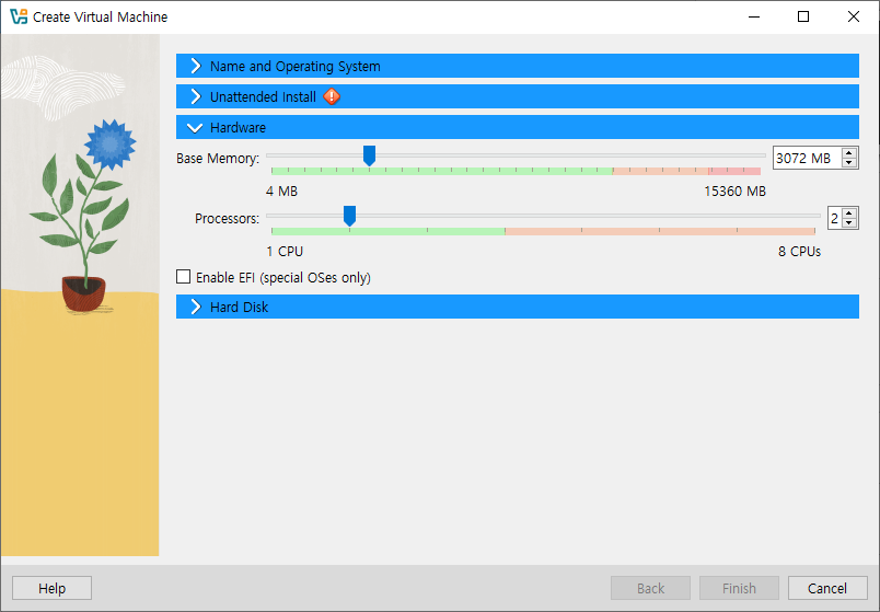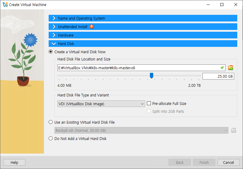 - 다른 VM이랑 이름 겹치면 Finish 안됨.. Commit all wizard data. 라는 메시지와 함께 Finish 클릭 안됨