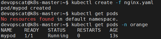 kubectl create -f nginx.yaml kubectl get pods -n orange