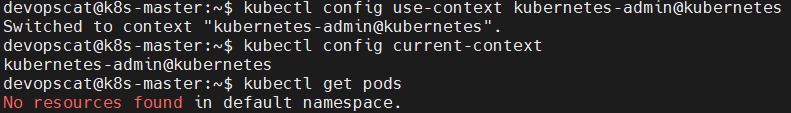 # Base namespace를 default namespace로 전환 kubectl config use-context kubernetes-admin@kubernetes # 현재 사용하고 있는 context 확인 kubectl config current-context