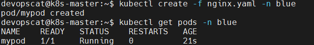 kubectl create -f nginx.yaml -n blue kubectl get pods -n blue- nginx.yaml