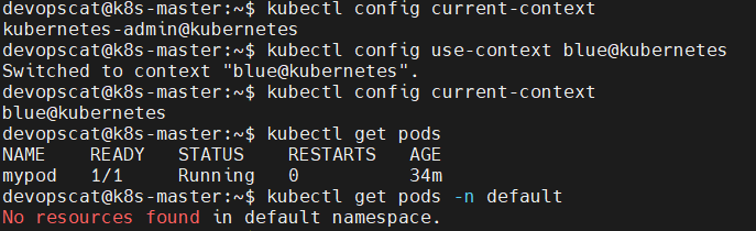 2) 등록된 namespace로 context 변경kubectl config use-context blue@kubernetes