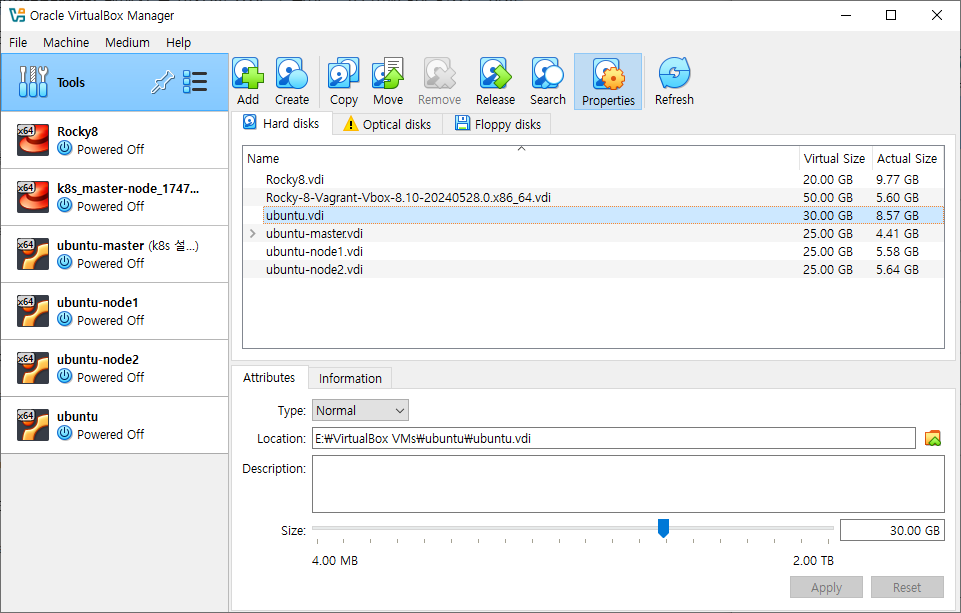 3. 디스크 목록에서 해당 VM의 .vdi 파일 선택