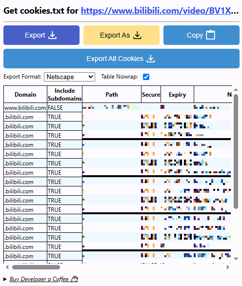 - 크롬 확장 프로그램을 사용하여 빌리빌리 로그인 후 쿠키를 export 한다.