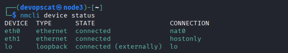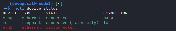 - eth1은 현재 디바이스는 있지만 연결 설정이 없는 상태