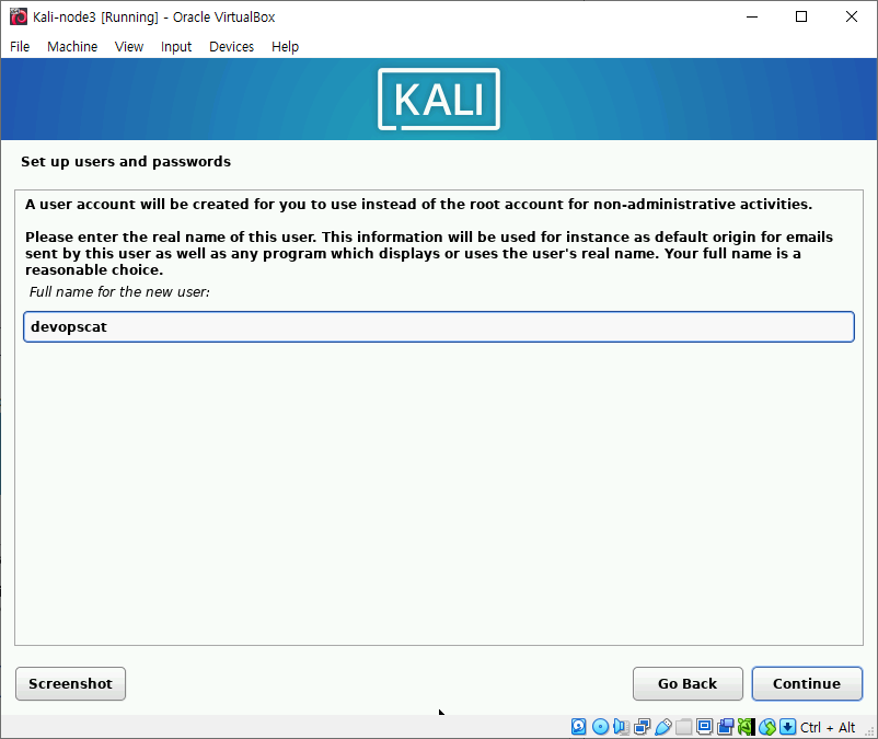 - 칼리 리눅스는 2020.01 버전부터 root 계정이 아닌 일반 사용자 계정을 사용한다.