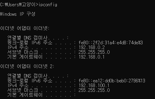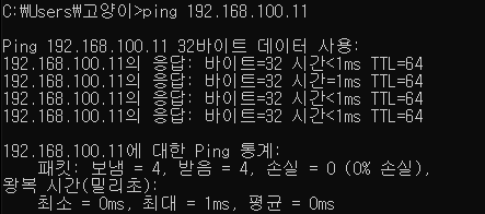 - 즉 같은 네트워크 대역(=서브넷)에 있어야 서로 통신 가능하기 때문에 모두 192.168.100.x 로 맞춘다.
