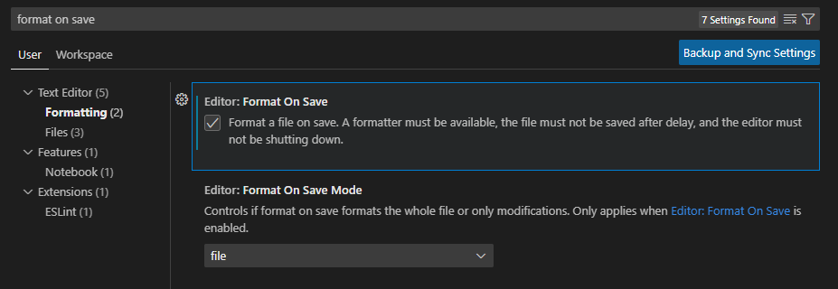 - Format on save : 저장 시 자동 정렬