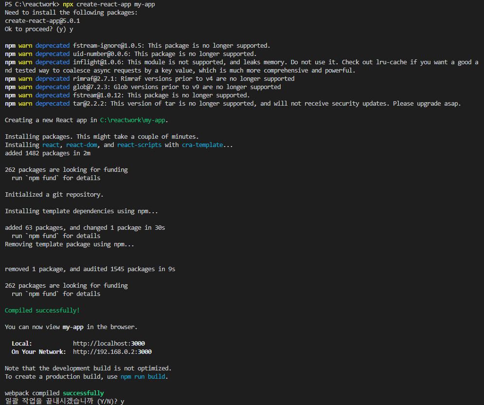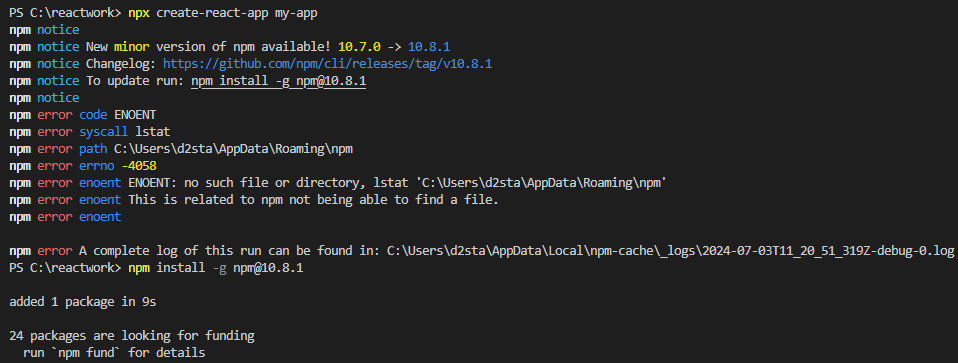# 실행 오류 발생 시 npm install -g npm@10.8.1 npx create-react-app my-app # npm install -g npm@10.8.1 cd my-app # react 시작 npm start