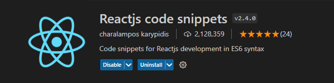 - Reactjs code snippets : 리액트 구문 자동 완성