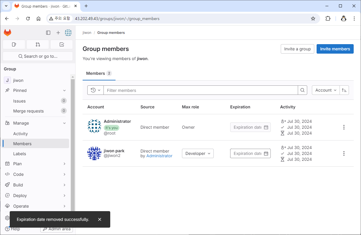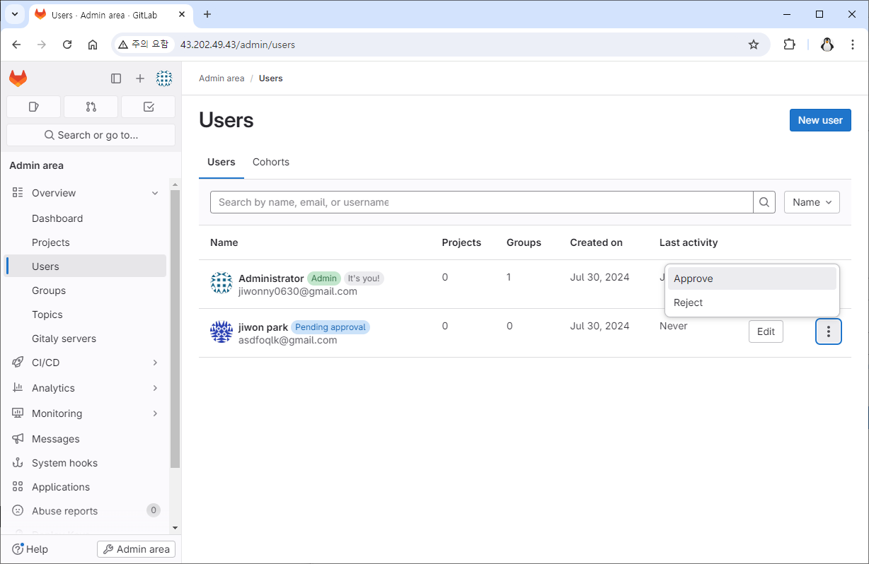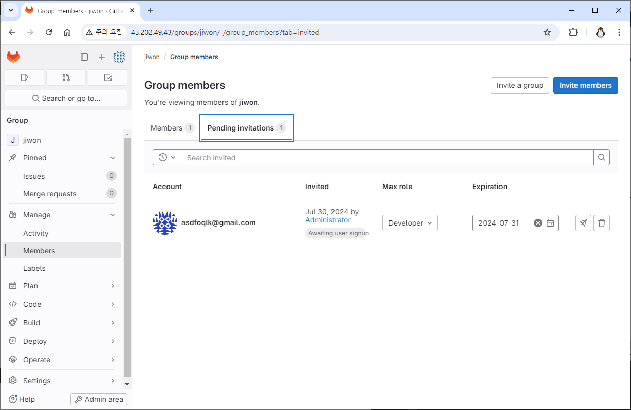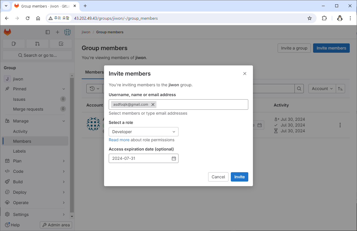 Admin 계정 정보 수정, Member 초대GitLab 2024. 7. 31. 14:30